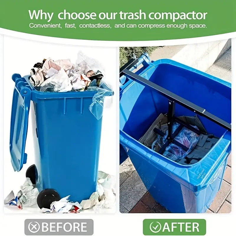 Kan du nemt og hygiejnisk presse skraldet sammen og dermed frigøre værdifuld plads i din affaldsbeholder. Den er manuel, nem at bruge og kræver hverken strøm eller kompliceret montering. På blot få sekunder presser du skraldet ned og får plads til meget mere – uden at skulle bruge hænderne eller hoppe i beholderen.