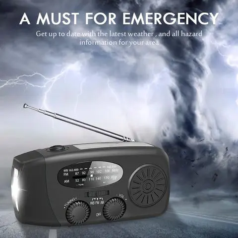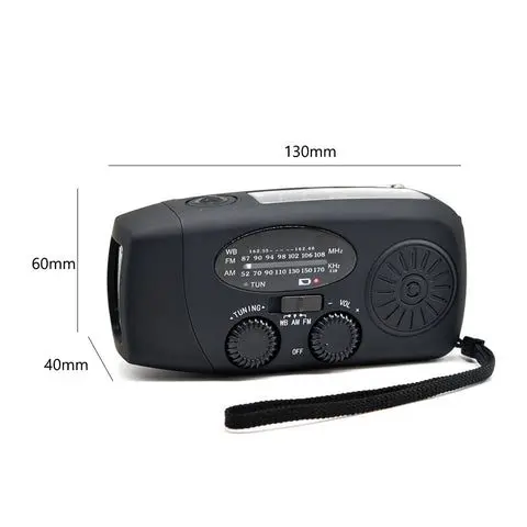 Denne nødradio kan drives via solceller, USB-opladning eller manuel drejning med håndsving. En perfekt radio til alle tænkelige situationer og behov.